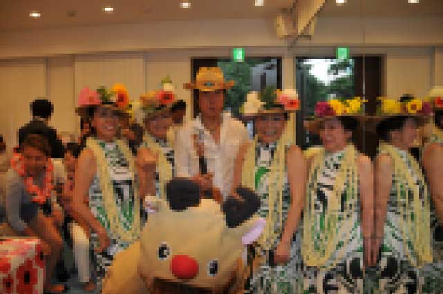 日本は暑いなと文句言いながらも、熟女のフラダンスチームに囲まれて、ご満悦の様でした